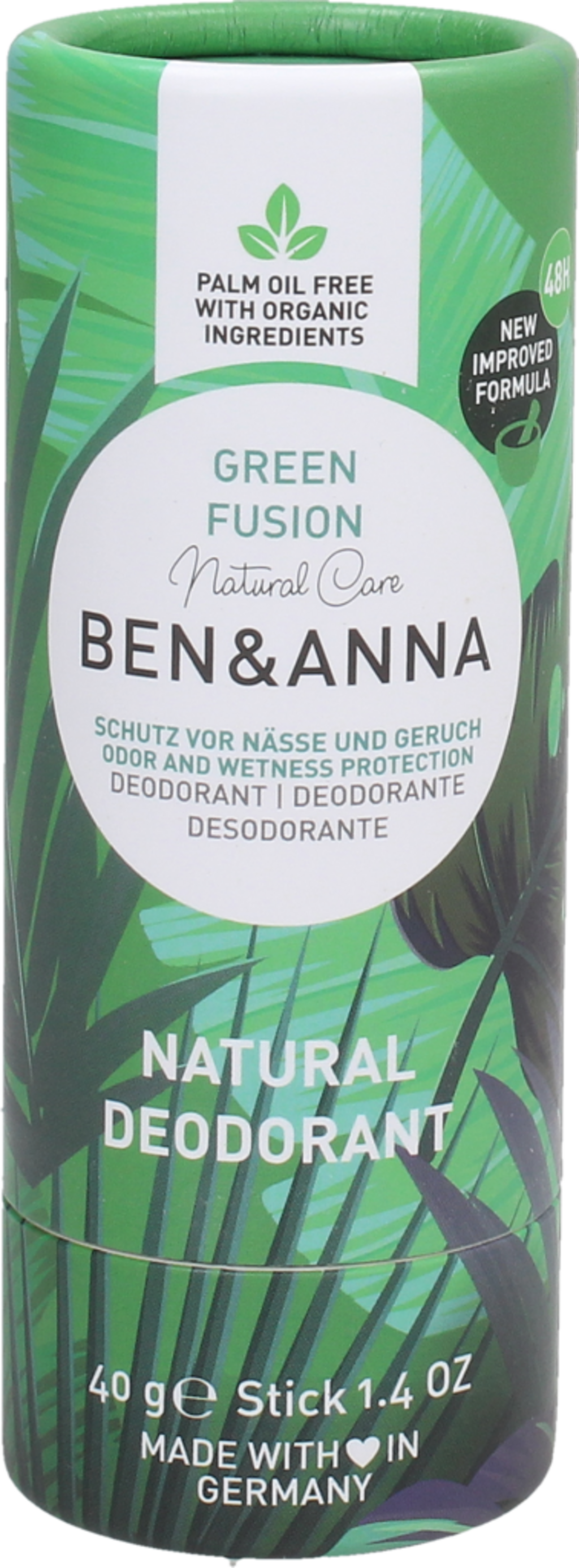 BEN & ANNA Papertube Natural Deodorant Stick, Green Fusion (40 g)