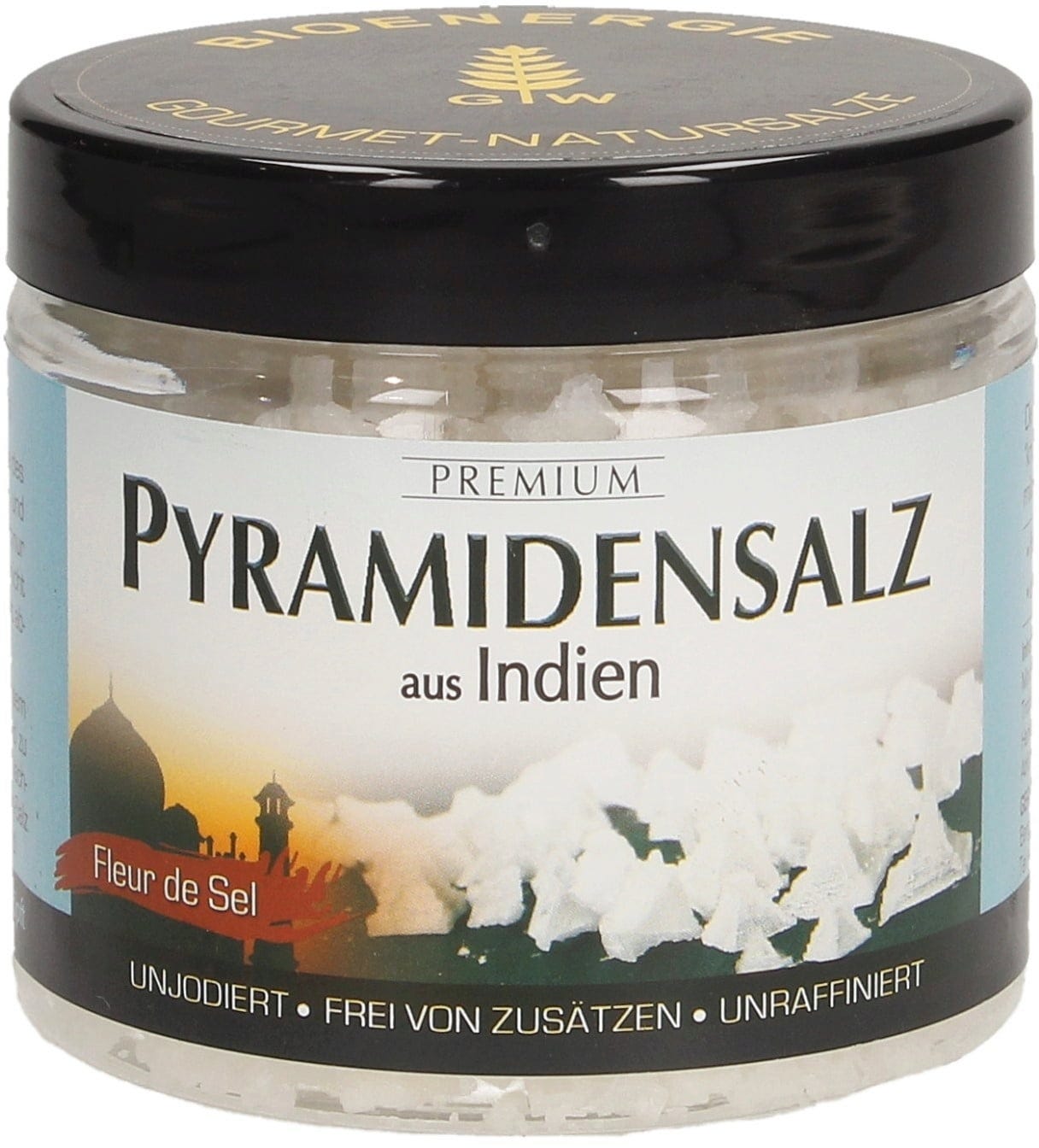 Bioenergia Sól piramidalna z Indii, ręcznie mielona fleur de sel, Opakowanie plastikowe, 100 g