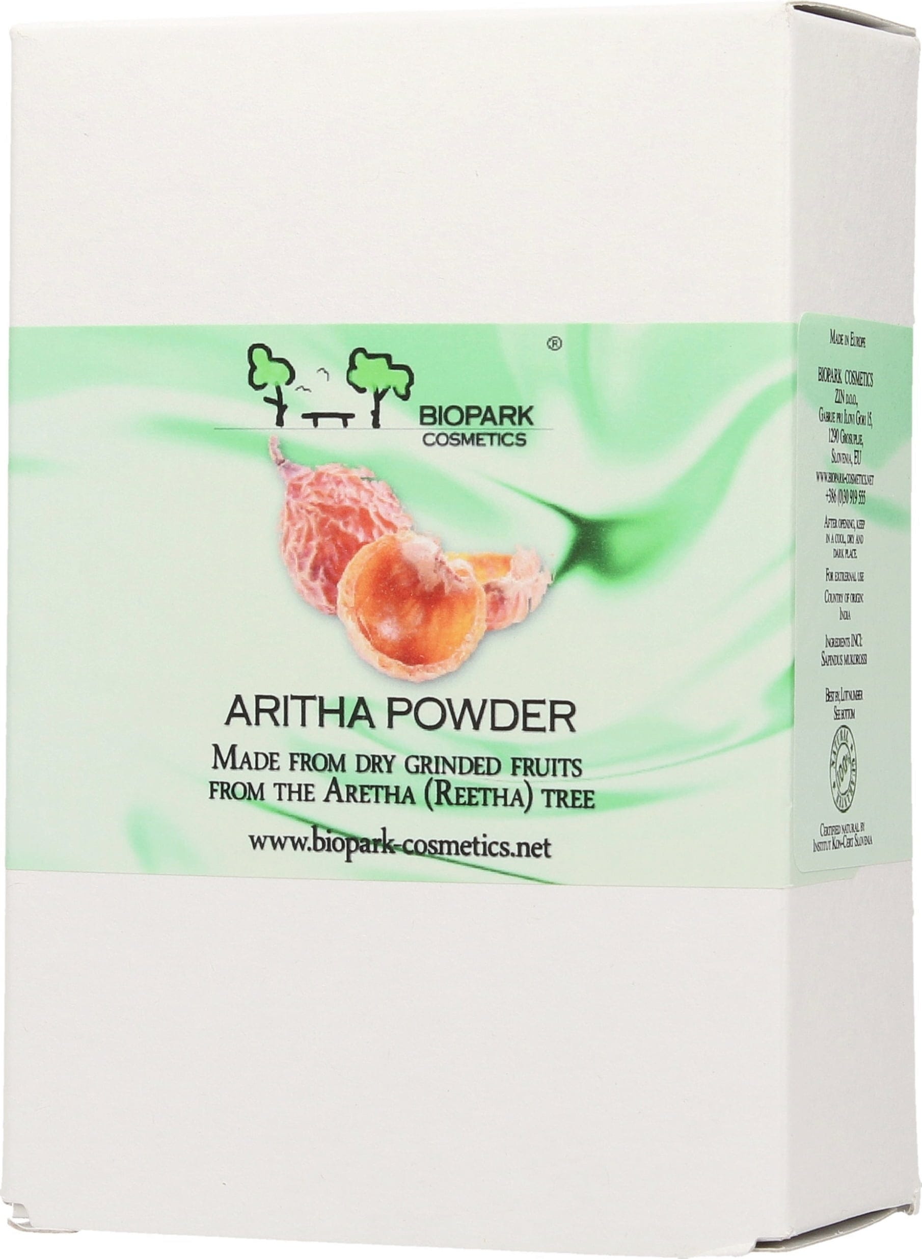 Proszek firmy Biopark Cosmetics jest otrzymywany z suszonych i mielonych owoców drzew aritha (Reetha). Ma on brązowy kolor i lekko pikantny zapach. Suszone owoce aritha zwane są orzechami piorącymi lub orzechami myjącym, a ich proszek jest bogaty w saponiny, dlatego bardzo mocno się pieni i razem z wodą ma bardzo silne działanie oczyszczające, które ma cudowny efekt działania przy myciu włosów tłustych. Proszek Reetha można stosować zamiast szamponu, żelu pod prysznic czy żelu do mycia twarzy. Sprawdza się on również jako środek do czyszczenia w gospodarstwie domowym.