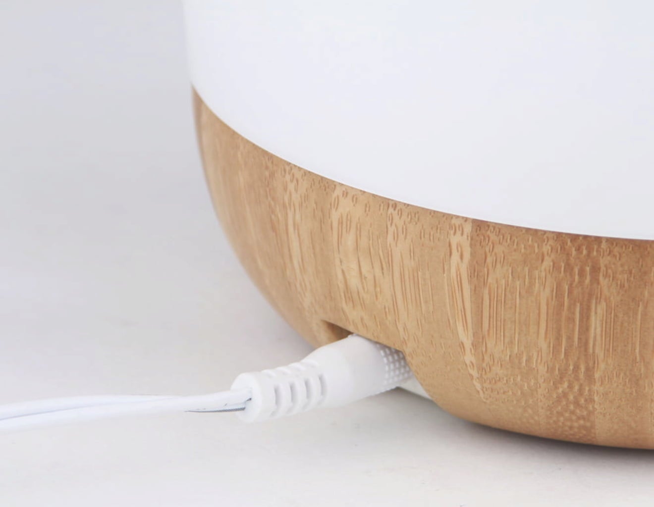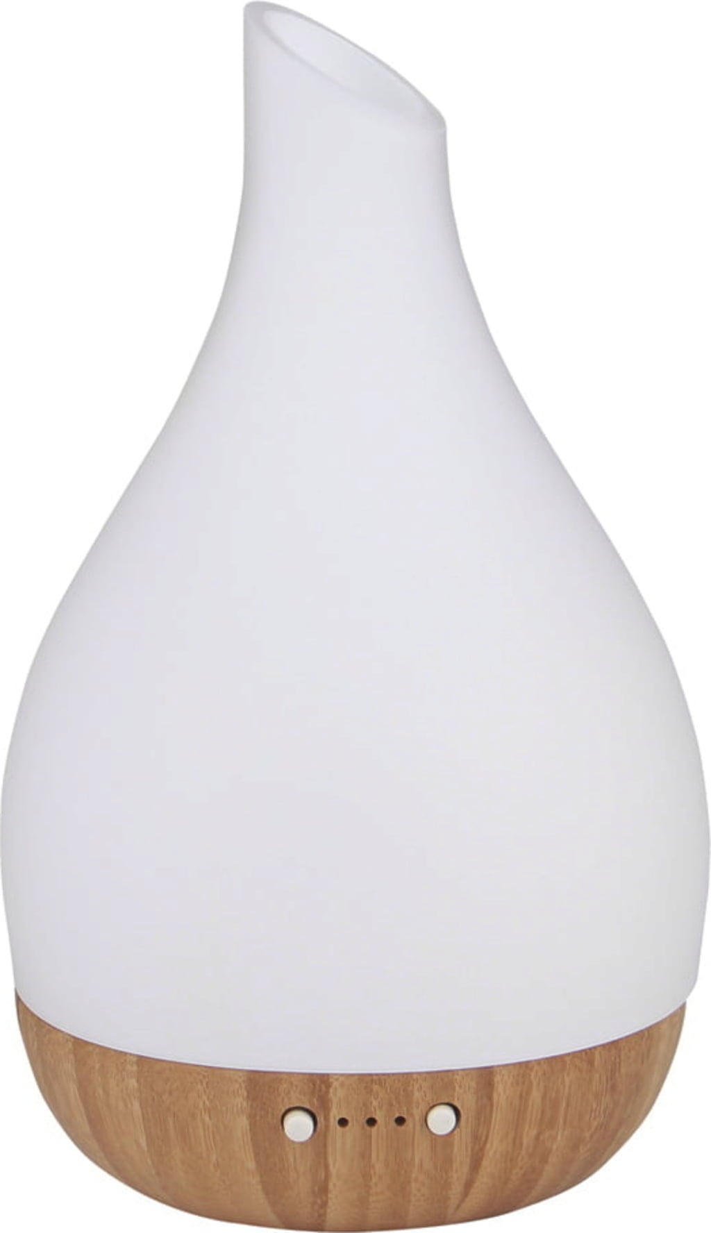 Elektryczny dyfuzor zapachowy do pomieszczeń o nowoczesnym designie, zapewniający stylową atmosferę, zachwyca zaokrąglonym wyglądem oraz połączeniem gładkiego szkła i bambusa. Zintegrowane oświetlenie LED gwarantuje nastrojowe chwile!