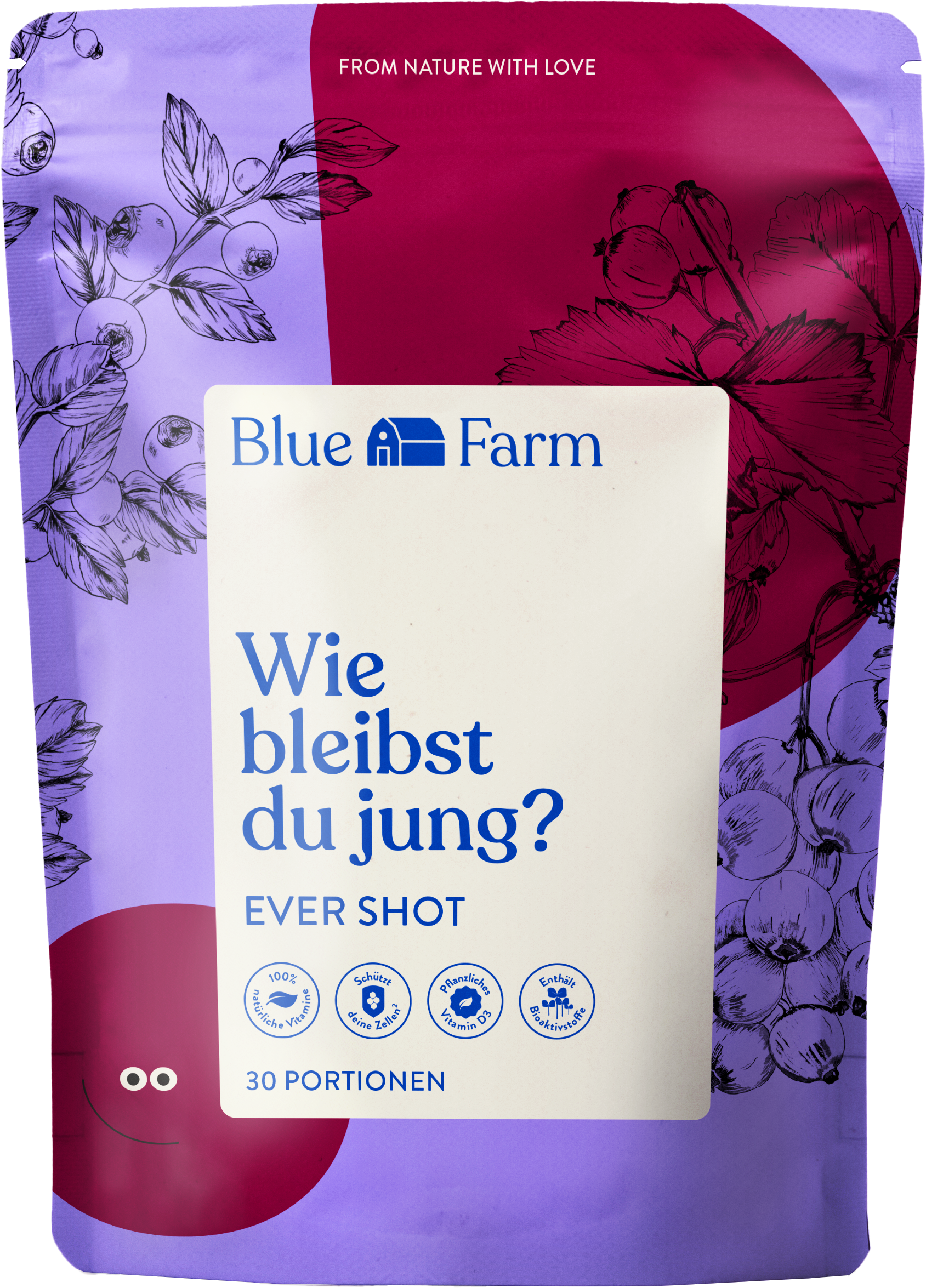 Ever Shot od Blue Farm to moc owoców i superfoods w wygodnej porcji proszku. Wystarczy wymieszać z wodą, a w kilka sekund otrzymasz napój, który z łatwością wkomponujesz w swoją codzienną rutynę. Mieszanka łączy owoce, ekstrakty roślinne i składniki odżywcze.