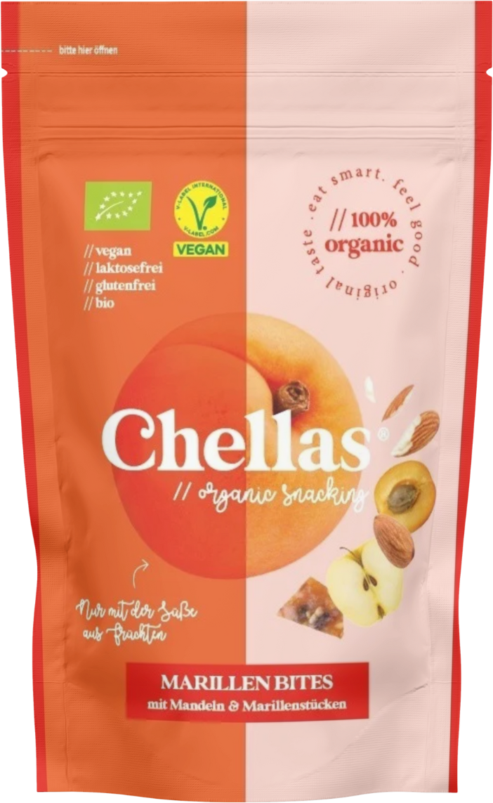 Owocowe, chrupiące, niepowtarzalne: organiczne kąski morelowe Chellas łączą słoneczny smak dojrzałych moreli z delikatnymi migdałami, tworząc przekąskę całkowicie pozbawioną dodatków. Słodycz pochodzi wyłącznie z natury. Pyszna receptura nie zawiera sztucznych aromatów, konserwantów ani oleju palmowego. Starannie wykonane ręcznie w Austrii i oczywiście certyfikowane ekologicznie, przekąski Chellas to coś więcej niż tylko przekąska w praktycznym formacie. Wegańskie, bezglutenowe i bez laktozy, idealnie pasują do codziennego życia.