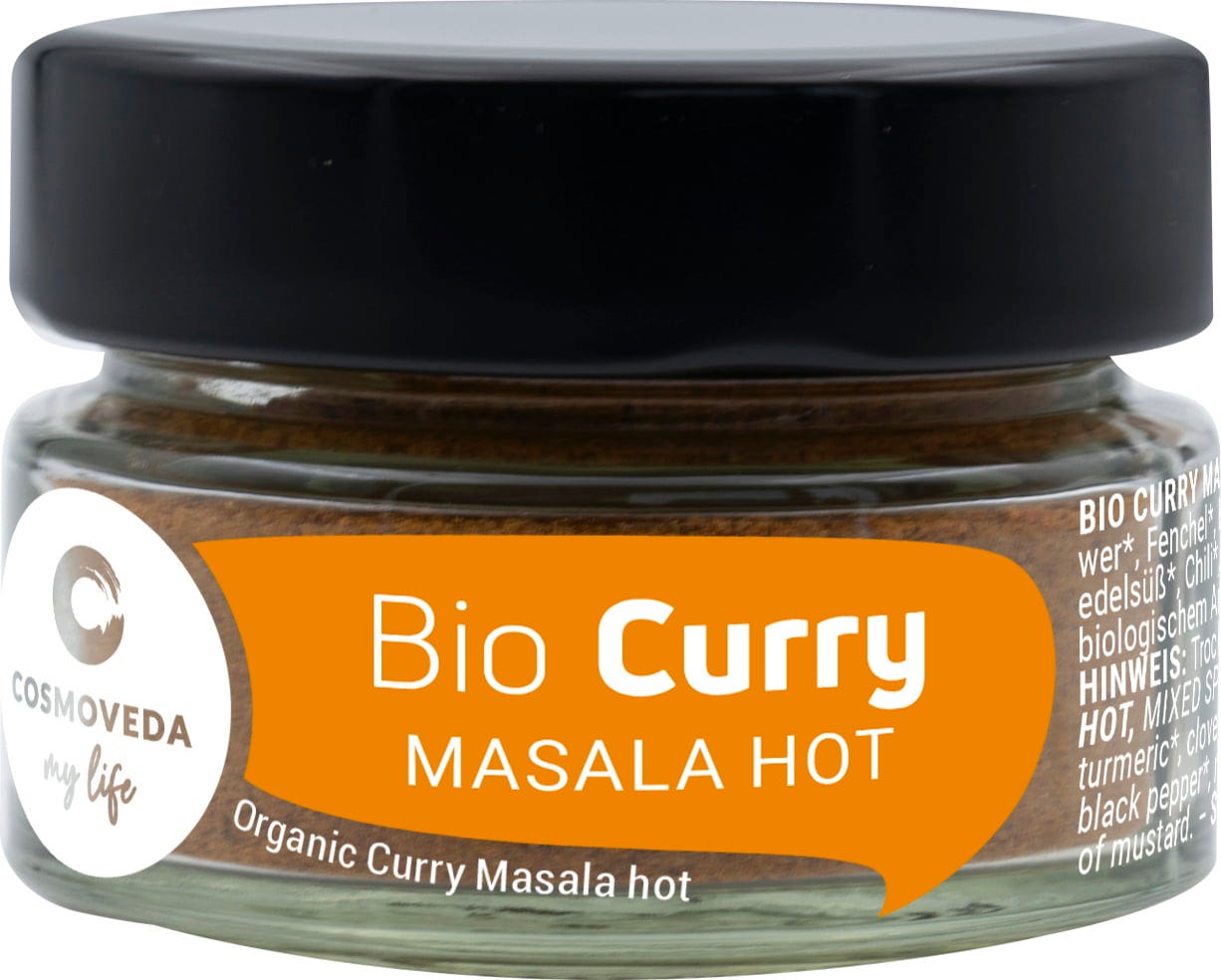 - BIO Curry Masala Hot to mieszanka 11 cennych przypraw, stosowana na wiele sposobów w kuchni indyjskiej i ajurwedyjskiej.