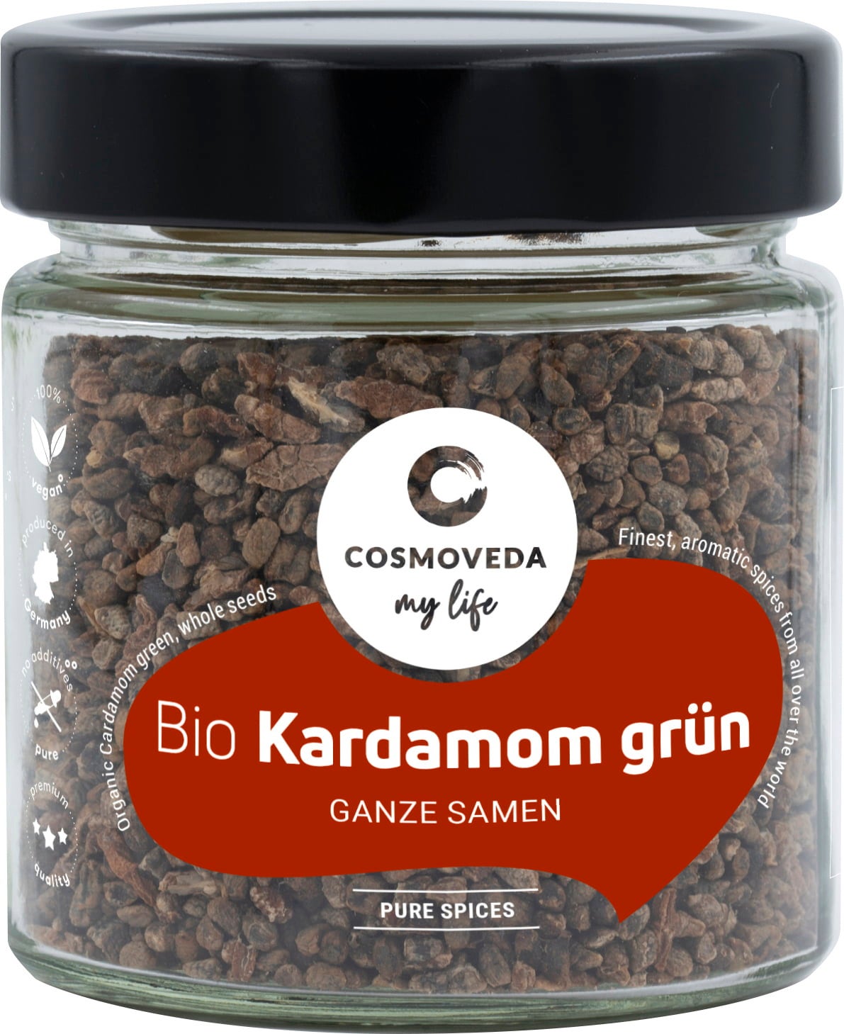 Czarne nasiona zielonego kardamonu świeżo mielone wykorzystywane są do słodkich potraw, napojów, mleka i kawy, dzięki czemu są one lepiej trawione i przyjazne dla żołądka. Kardamon zalicza się do najstarszych oraz najcenniejszych potraw na świecie. Już starożytni Grecy i Rzymianie znali go bardzo dobrze. Przyprawa ta pochodzi z Indii Południowych, dzisiaj pochodzi również ze Sri Lanki, Gwatemali, Tanzanii i Bazylii.