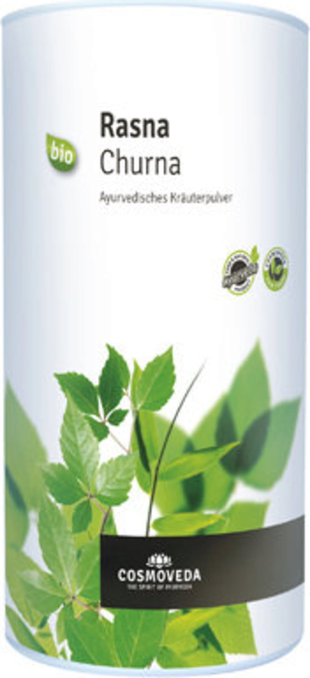Rasna - Alpinia galanga - to roślina znana pod nazwą Kaempferia galanga, dochodząca do 1,5 m wysokości, o biało-czerwonych kwiatach, których korzeń jest stosowany w żywieniu ajurwedyjskim. Proszek z suszonego korzenia, który jest drobno i delikatnie mielony (poniżej 40°C) w naszej produkcji, pochodzi z naszych projektów fair trade i bio w Indiach i na Sri Lance.