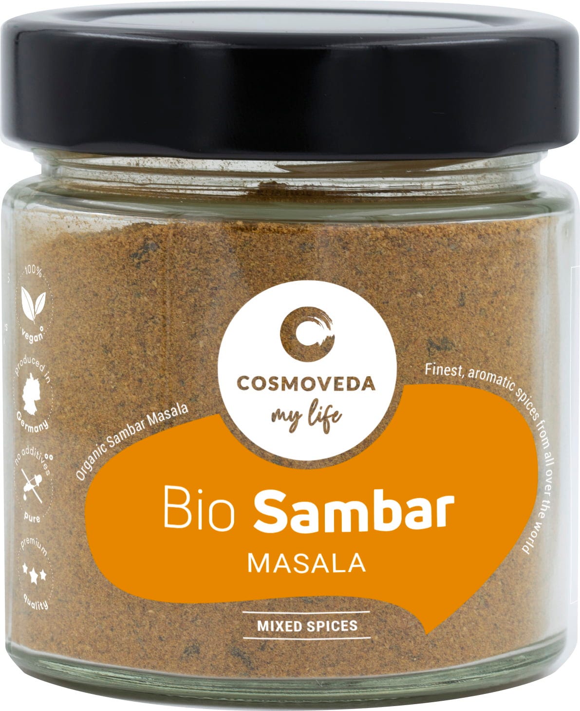 Sambar Masala Bio COSMOVEDA, specjalnie dobrana ajurwedyjska mieszanka wykwintnych przypraw, która pomoże Ci stworzyć pyszną zupę sambar.