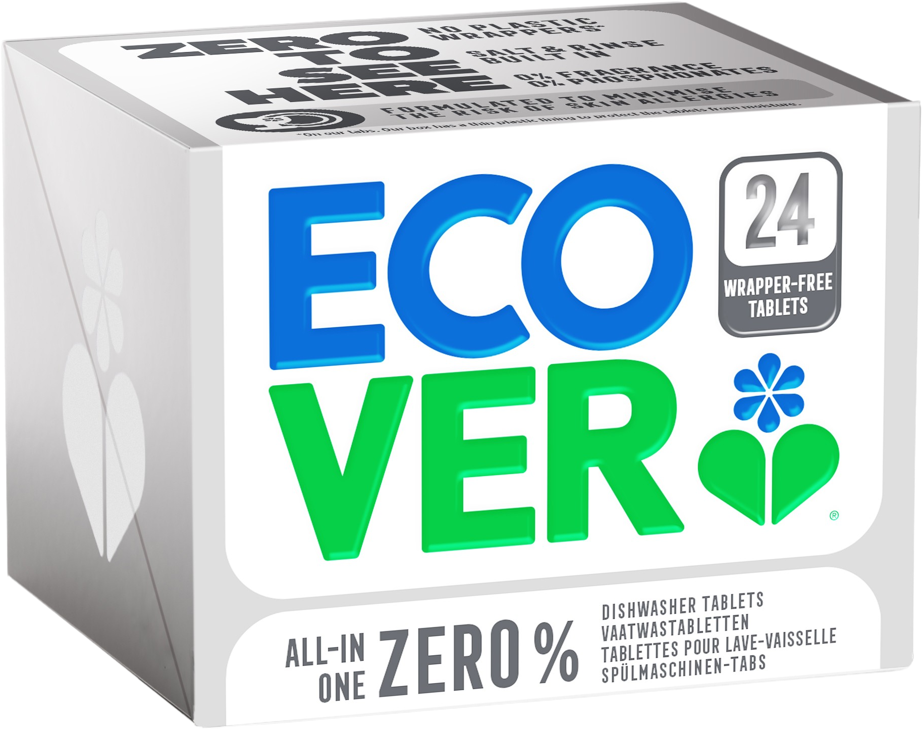 Tabletki do zmywarki ecover ZERO są przeznaczone dla osób uczulonych. Opierają się na odnawialnych, biodegradowalnych składnikach roślinnych.