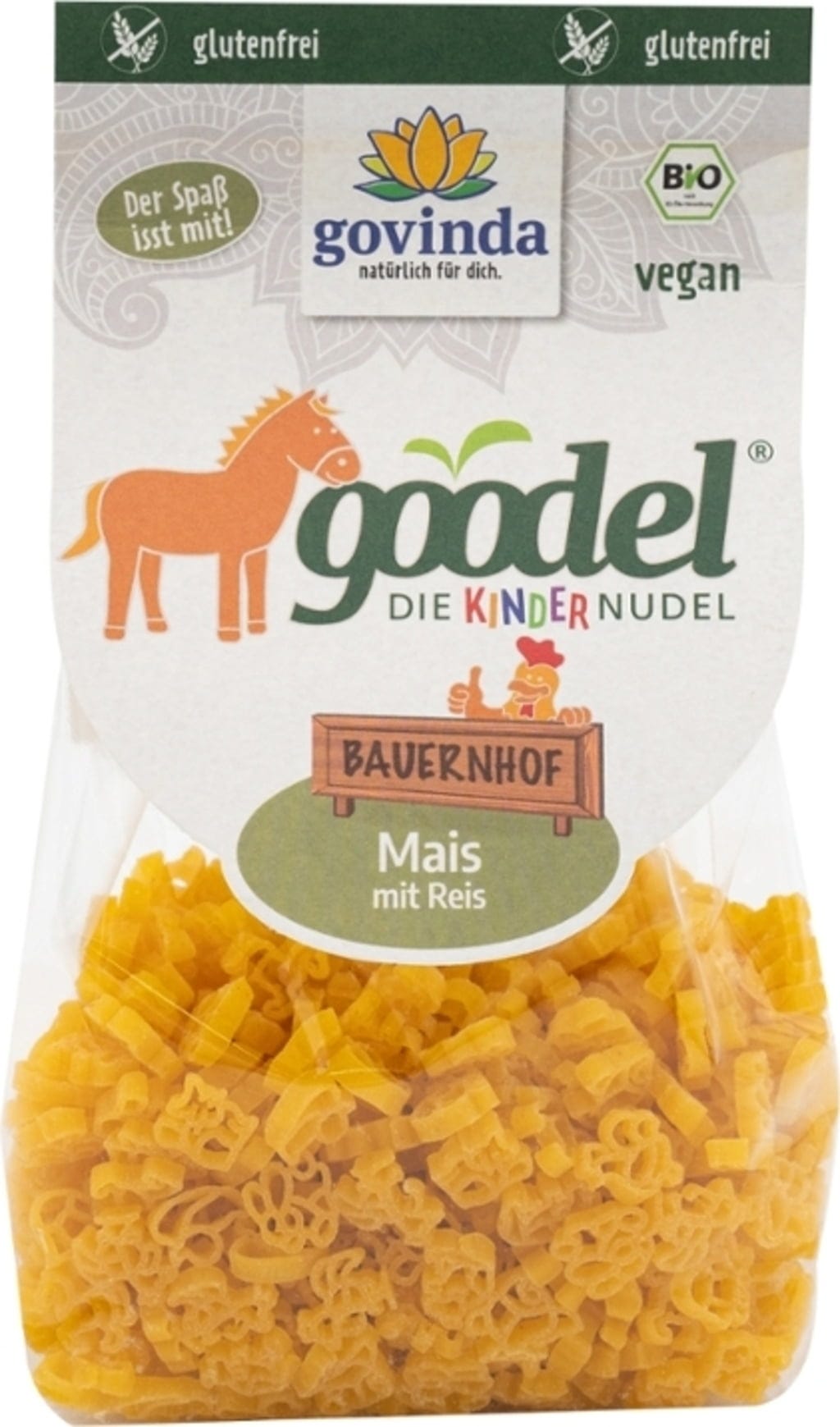 Makaron dla dzieci "Farma" od Govinda wnosi zabawę i radość do talerza. Wytwarzany z włoskiej kukurydzy i ryżu, ten makaron jest ręcznie robiony i delikatnie suszony. Jego bezglutenowa receptura sprawia, że jest to wysokiej jakości wybór dla osób dbających o świadomą dietę. Urocze kształty zwierzątek i łagodny smak sprawiają, że jest to popularny posiłek dla małych smakoszy.