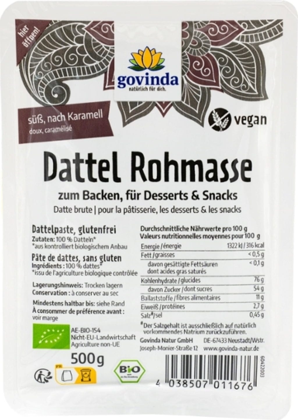 Govinda Surowa masa daktylowa Bio, 500 g