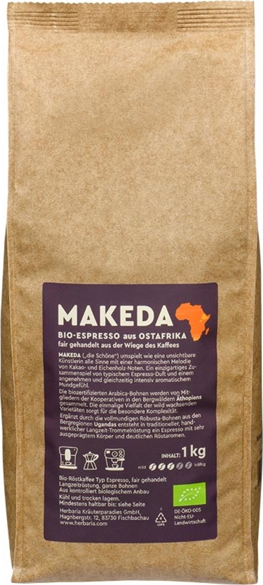 Zanurz się w świecie MAKEDA („piękna”), organicznego espresso z Afryki Wschodniej, które urzeka Twoje zmysły harmonijnymi nutami kakao i dębu. To wyjątkowe doznanie zapachowe łączy w sobie typowy aromat espresso z intensywną i jednocześnie przyjemną rozkoszą w ustach.