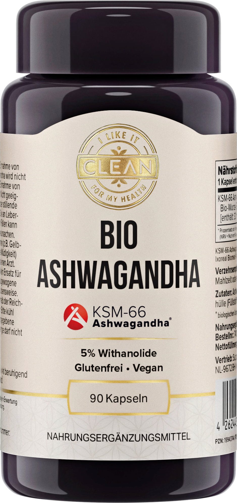 i like it clean Organiczny ekstrakt z korzenia Ashwagandhy 600 mg, 90 kapsułek
