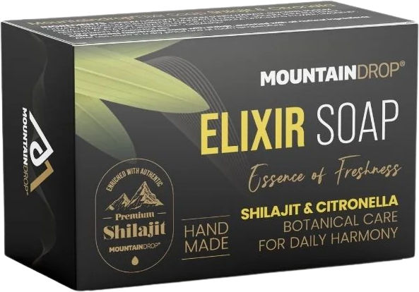 Elixir Soap od Mountaindrop to ekskluzywne mydło do pielęgnacji skóry wzbogacone bogatym w minerały najwyższej jakości shilajit. Wyprodukowane przy użyciu delikatnego procesu mieszania na zimno, cenne składniki mineralne i inne wrażliwe na ciepło składniki są w pełni zachowane. Formuła jest specjalnie dostosowana do potrzeb szerokiej gamy rodzajów skóry i zapewnia delikatne oczyszczanie bez wysuszania, nawet w przypadku skóry wrażliwej. Dostępne w orzeźwiającym zapachu cytronelli lub mięty, mydło pozostawia skórę odżywioną po każdym myciu.