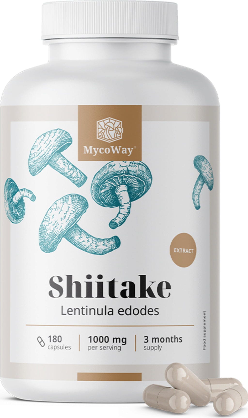 Kapsułki MycoWay zawierają skoncentrowany ekstrakt z grzybów shiitake. Zalecana dzienna porcja zawiera 1000 mg ekstraktu, standaryzowanego na około 30% polisacharydów. Dzięki kompaktowej formie kapsułek, produkt można łatwo włączyć do codziennej rutyny i dobrze wpasować w zróżnicowany styl życia.