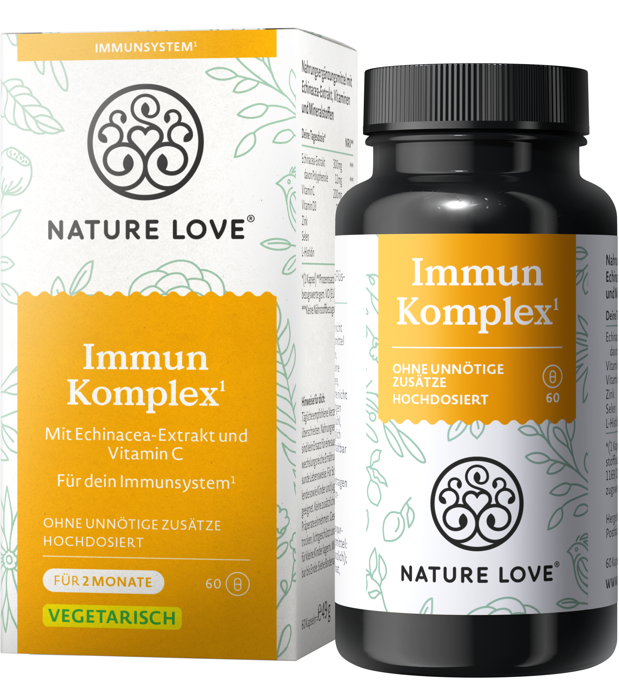Te bogate w składniki odżywcze kapsułki z kompleksem wspierającym układ odpornościowy od Nature Love są wzbogacone o cenny ekstrakt z echinacei, witaminę C, witaminę D, cynk, selen i L-histydynę. Wystarczy jedna kapsułka dziennie, aby zapewnić optymalne wsparcie dzień po dniu. Kapsułki nie zawierają zbędnych dodatków i inżynierii genetycznej.