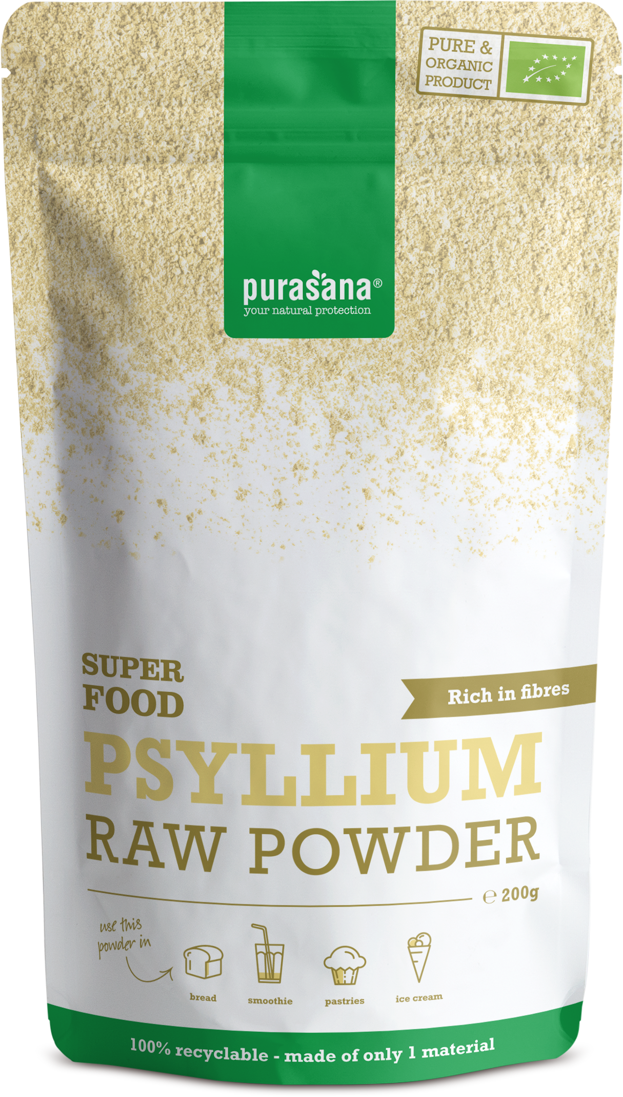 Proszek z babki Purasana zawiera naturalnie błonnik, co czyni go cennym produktem. Proszek jest wytwarzany z nasion rośliny Plantago ovata, która rośnie w Indiach i jest starannie przetwarzana.