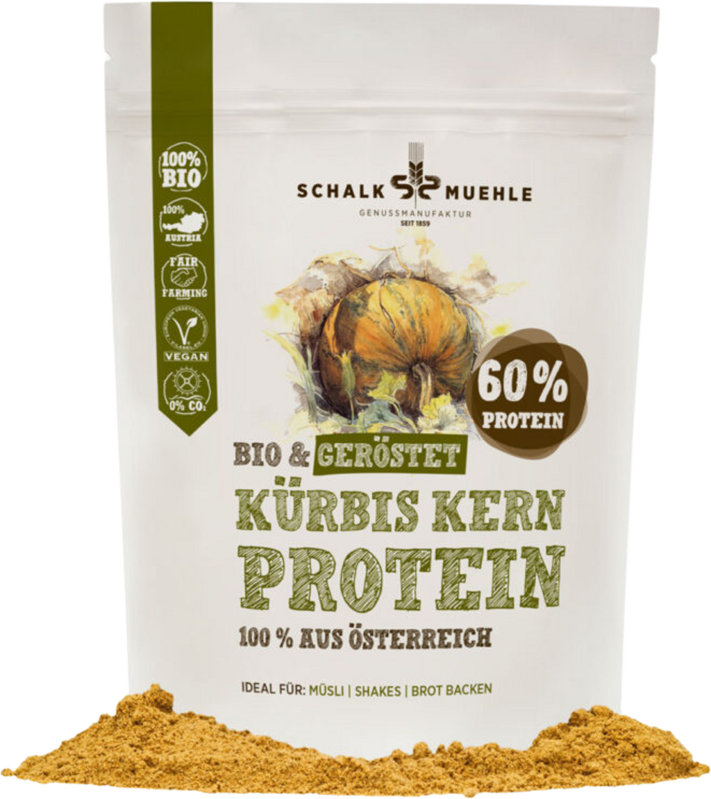 W przypadku tego proszku białkowego nasiona dyni są delikatnie palone i za pomocą szczypty soli, aby wytworzyć pikantne i lekko orzechowe odczucie smaku. Z tym pysznym proszkiem możesz udoskonalić koktajle, musli, a nawet miksy pieczywa i nadać im niezwykły akcent.