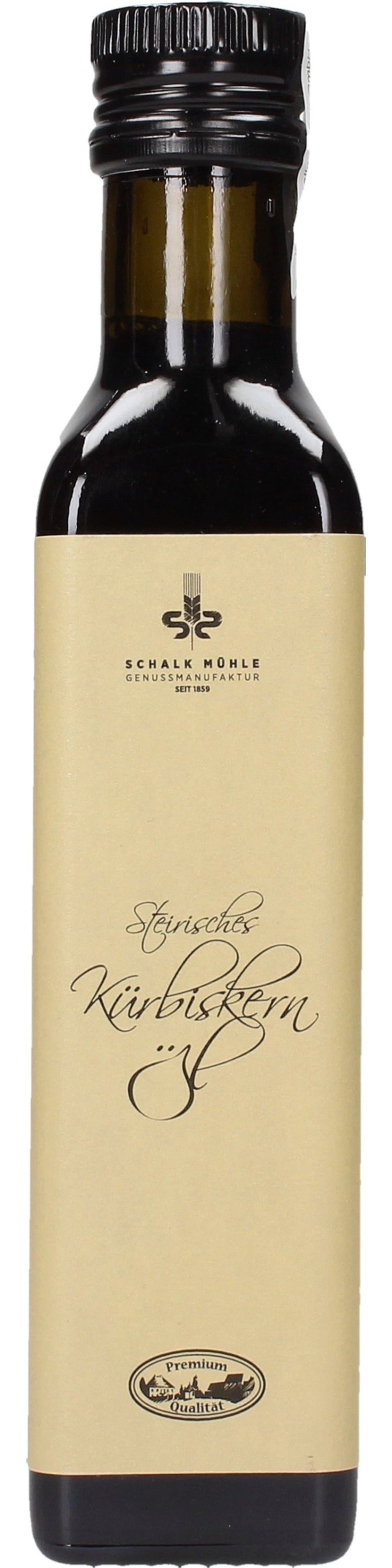 Do produkcji styryjskiego oleju z pestek dyni firmy Schalk-Mühle używane są tylko najlepsze styryjskie pestki dyni, które są certyfikowane od uprawy do zbioru. Olej z pestek dyni jest produkowany w tradycyjny sposób, delikatnie i ekologicznie.