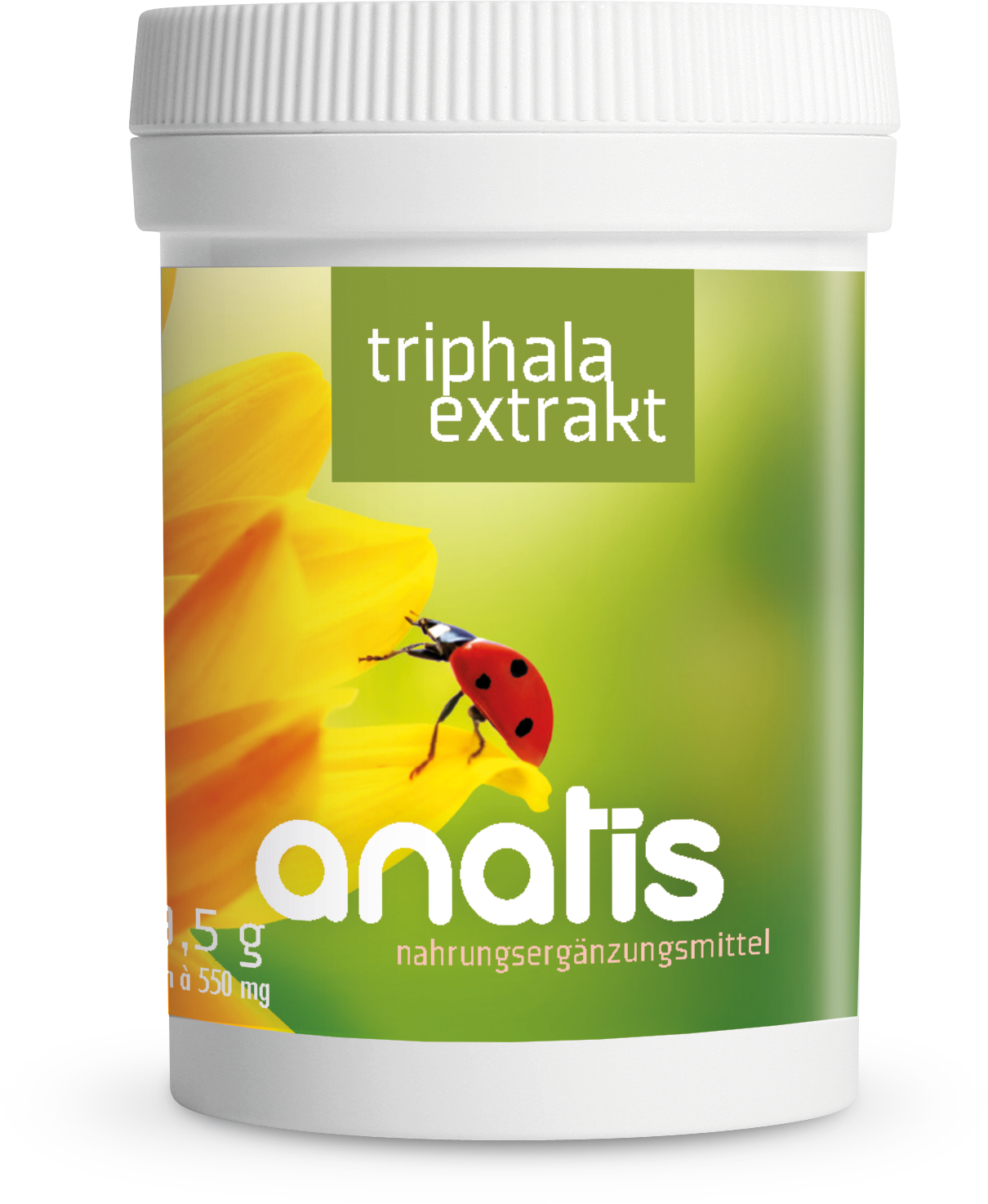 Kapsułki z ekstraktem Triphala z anatis zawierają ajurwedyjską mieszankę 3 gorzkich owoców Amlaki, Haritaki i Bibhitaki. Do kapsułek wykorzystuje się ekstrakty owocowe, którymi następnie napełnia się osłonki kapsułek roślinnych. Każda kapsułka zawiera 250 mg ekstraktu z triphaly (w tym 40% garbników) i 200 mg błonnika akacjowego.