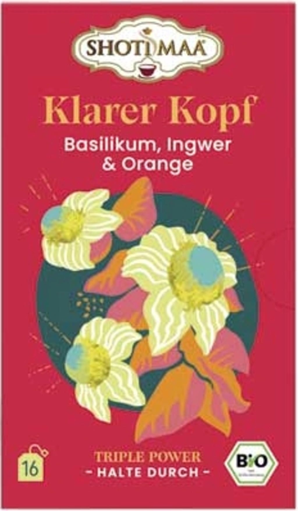 SHOTI MAA Bio herbata - Focus - bazylia, imbir i pomarańcza, 16 torebek herbaty (32 g)