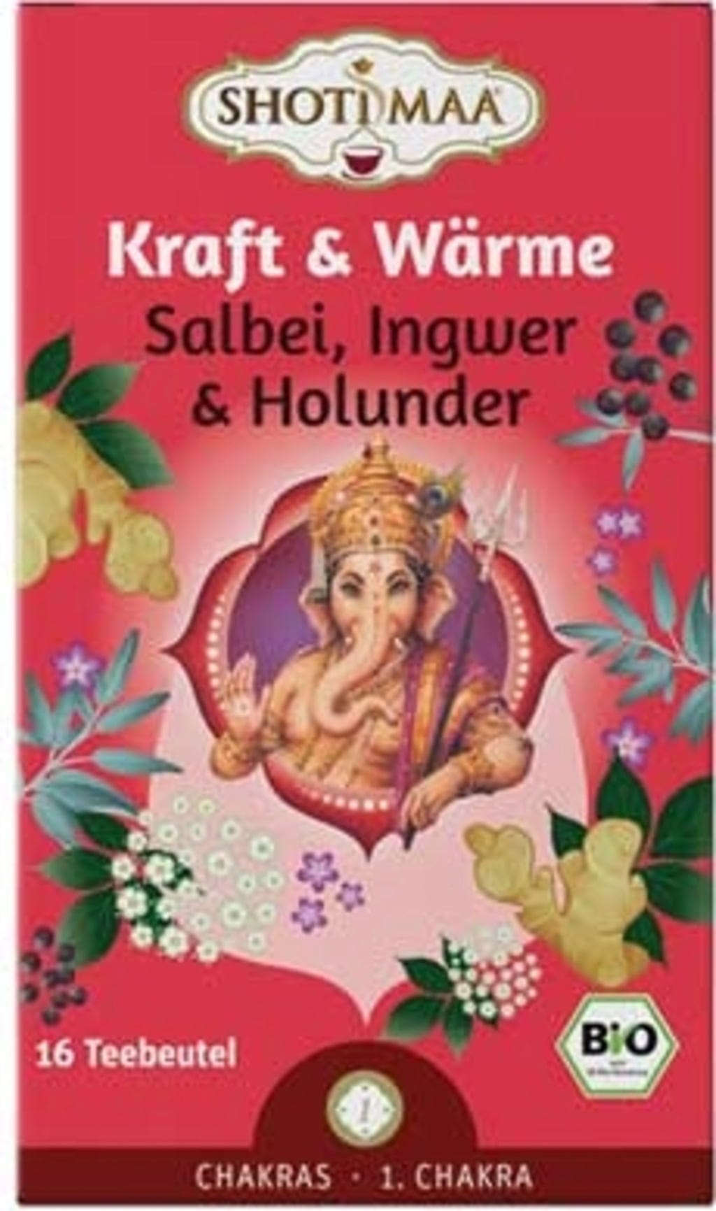 SHOTI MAA Bio herbata - I am (1. czakra) - szałwia, imbir, bez, 16 torebek herbaty (32 g)