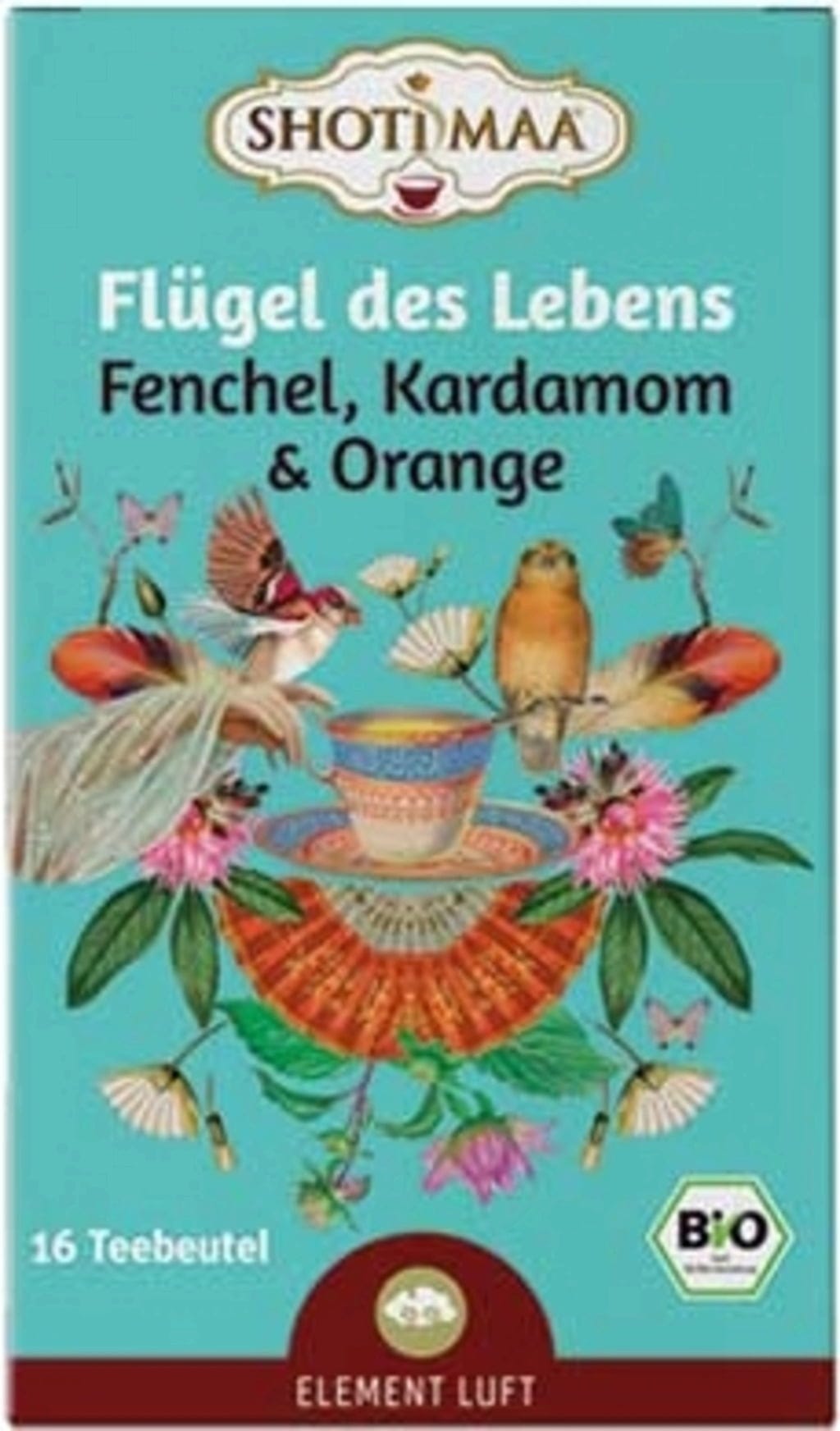 SHOTI MAA Bio herbata - Life on Wings - koper włoski, kardamon i pomarańcza, 16 torebek herbaty (32 g)