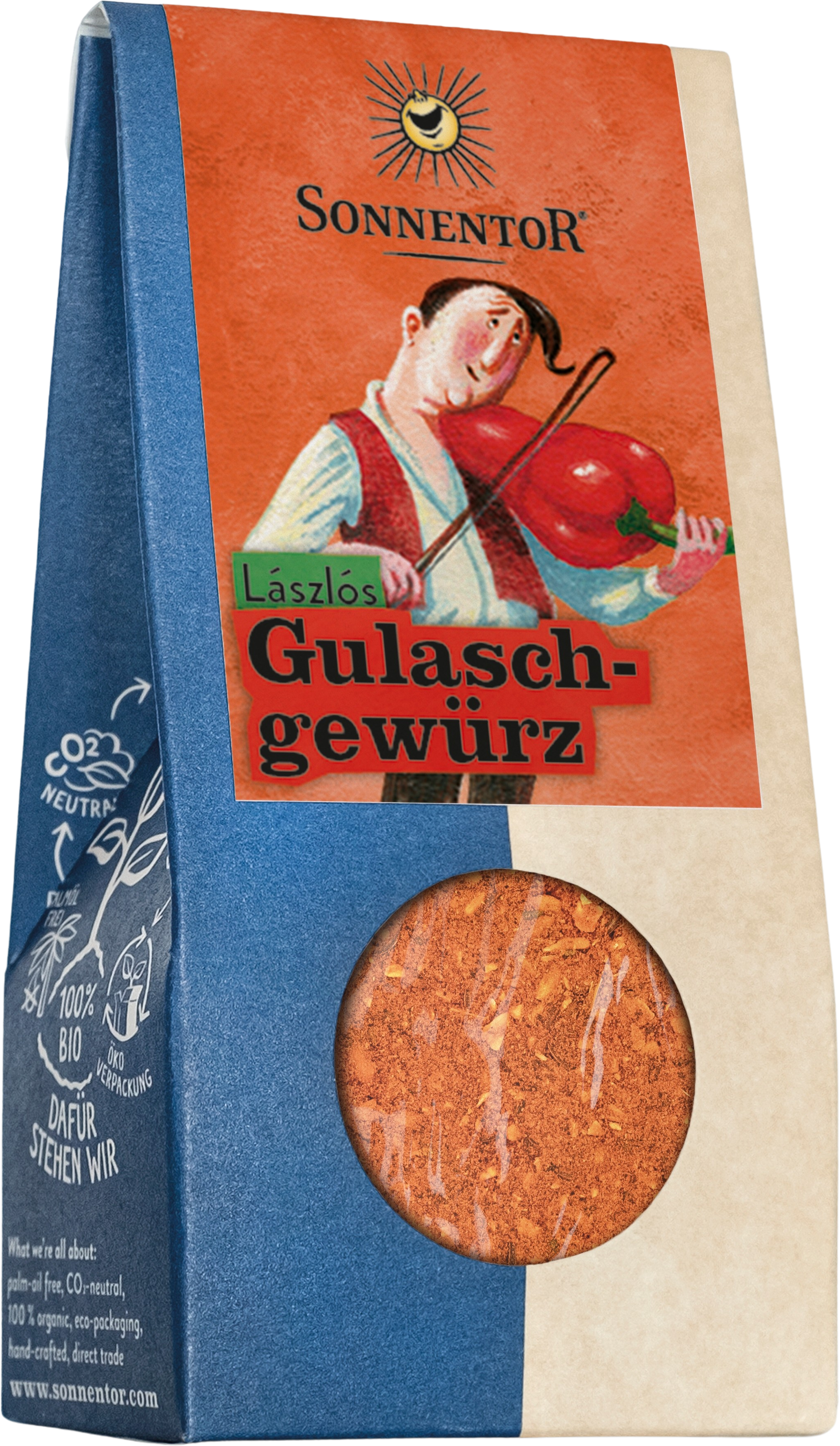Przyprawa do gulaszu László prezentuje się w świecącym odcieniu czerwonej terakoty. Ma uwodzicielski aromatyczny zapach i nadaje potrawom pikantnie-aromatycznego smaku. Ta kreacja z papryki, czosnku i kminku udoskonalona jest owocową ostrością.